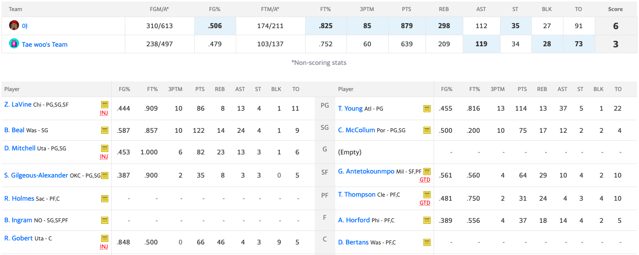 By following up with media updates, users can trade players with each other which makes this creative competition all the more exciting and fun. Each week, you are paired with a competitor and the two teams compete to see who can win the most categories (points, rebounds, assists, etc.)